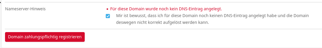 Bei meinen Tests ist mir noch ein weiterer Sachverhalt aufgefallen. Und das schreibe ich hier nur, damit ich in ferner Zukunft wieder in meinem eigenen Notizen nachlesen kann, was der Stolperstein ist. Es geht um die Schritte die bei Domain-Kauf durchzuführen sind.